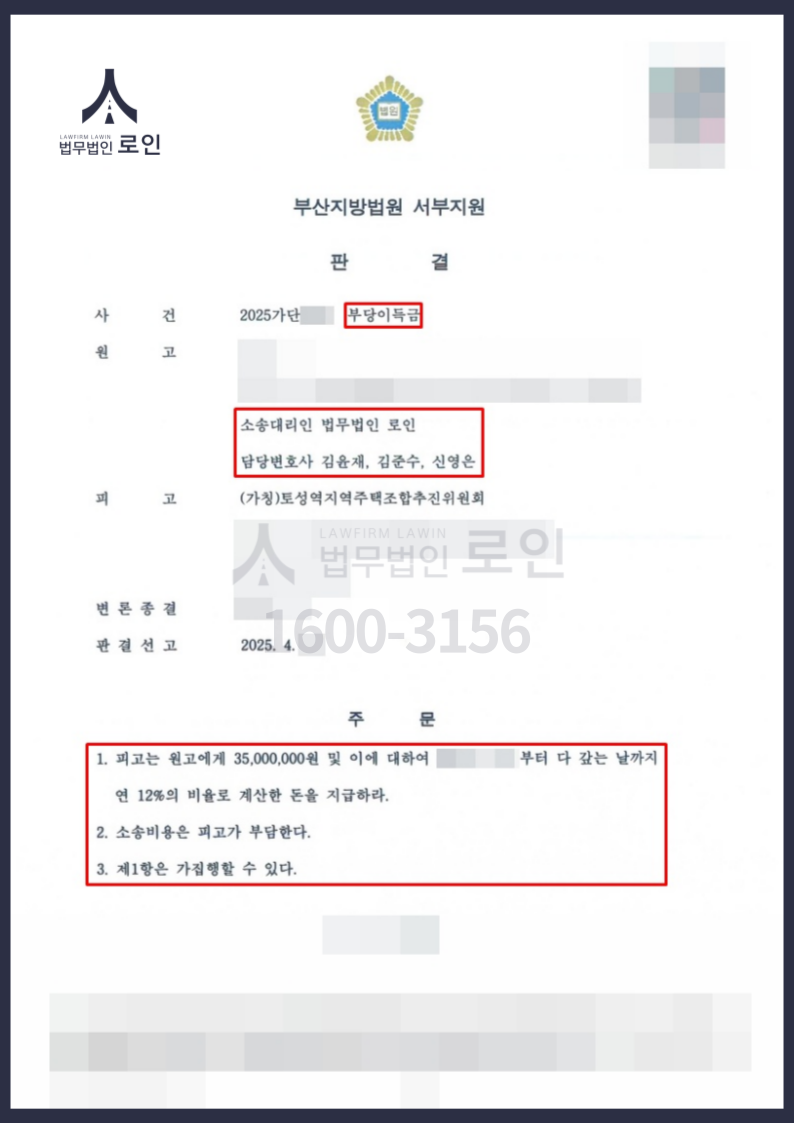 그 결과 재판부는 의뢰인에게 3500만 원을 지급하라는 원고 승소 판결을 선고했습니다.